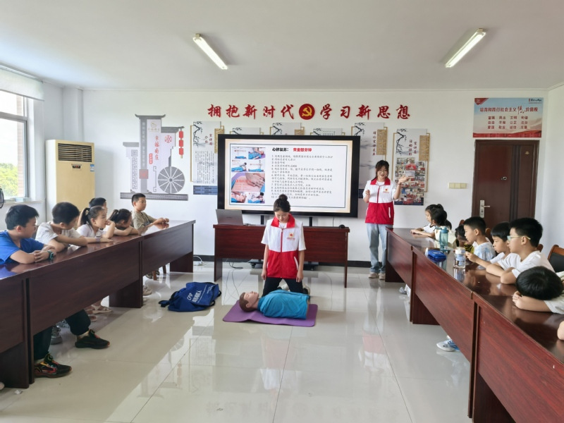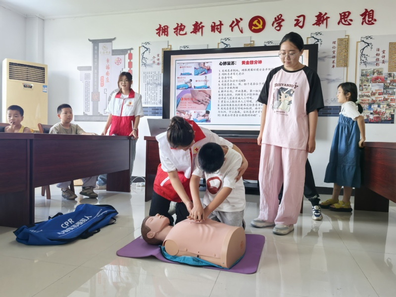 实践团在课程设计中注重劳动技能与生命教育相结合。《“小小救护员”急救培训》中,志愿者详细讲解心肺复苏、海姆立克急救法以及常见的创伤处理方法。孩子们神情专注地利用假人模型开展实操训练,在志愿者手把手的指导下,逐步掌握了急救动作的要领。此外,志愿者还带领孩子们参与课后教室卫生打扫以及村内环境义务清洁等公益劳动,通过这些亲身劳动体验,在孩子心中播下了奉献的种子,也让大家深刻体会到劳动的艰辛与价值。
