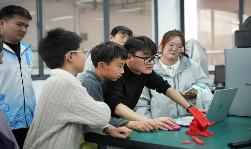 四、3D 打印科普活动体验中,青少年近距离观察3D打印设备、学习建模设计,感受前沿科技的无限魅力,为培育新时代技术技能人才筑牢根基。