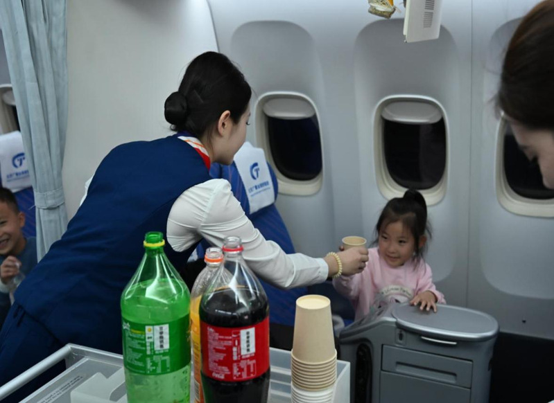 五、民航客舱智慧体验活动中,充分利用了空中乘务专业“全景式模拟”的实训教学环境,让孩子们化身“小小乘务员”,学习服务礼仪与安全知识,从递送一杯温水到礼貌用语的使用,孩子们在寓教于乐中感受到了民航服务的严谨与温馨。
